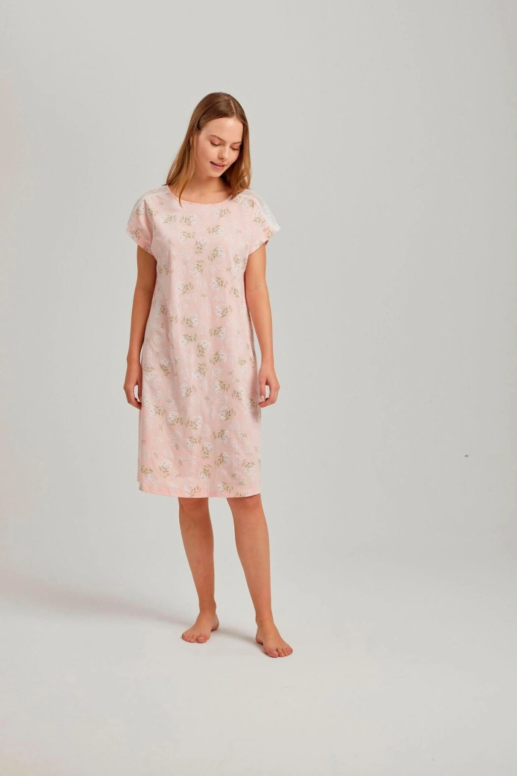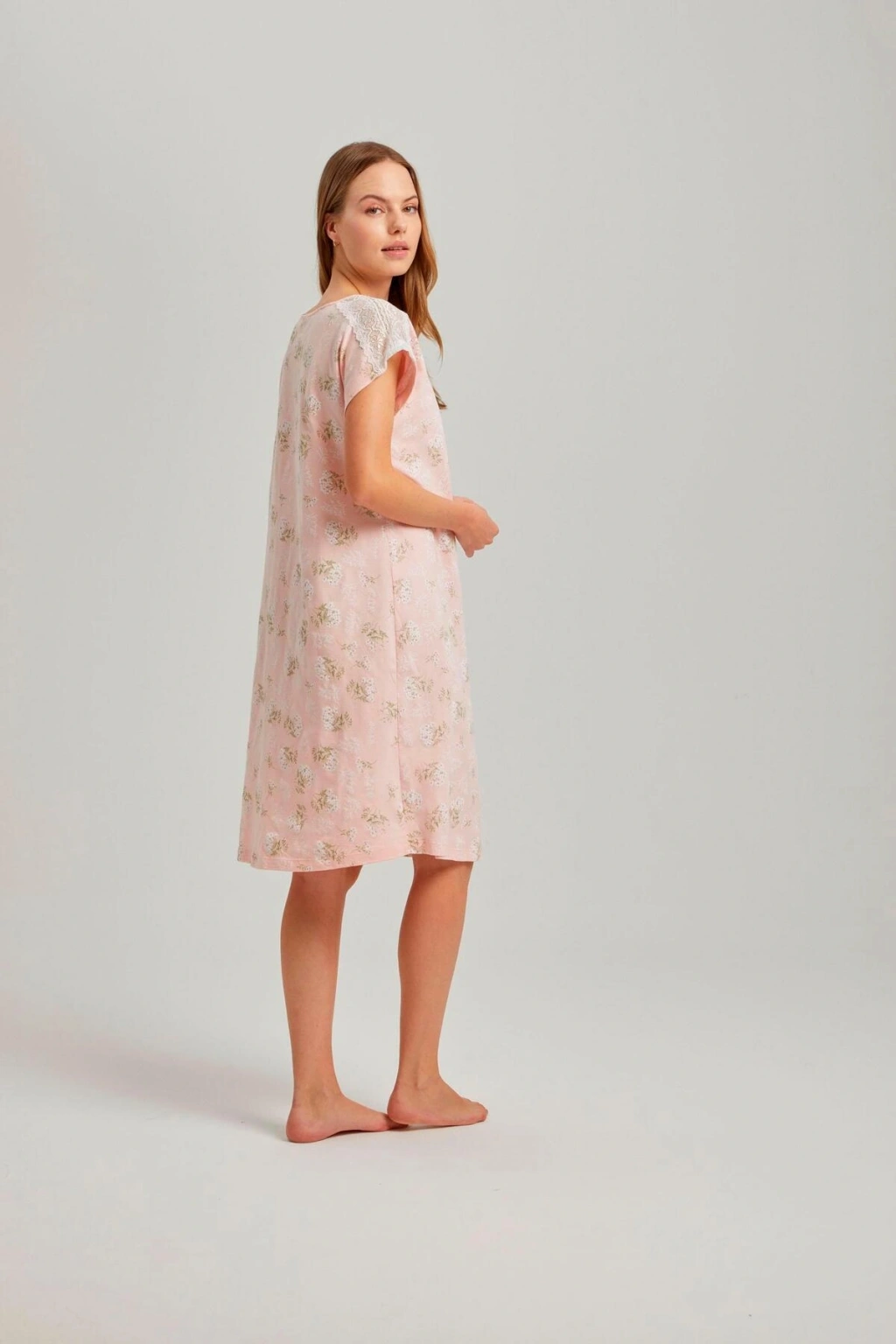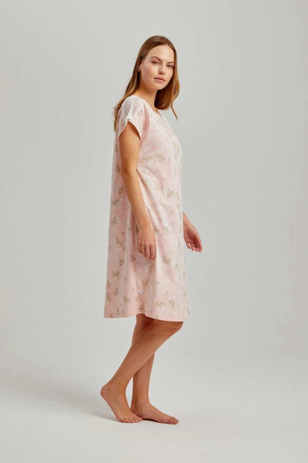 Taş Rengi Omuzu Dantelli Modal Kadın Gecelik