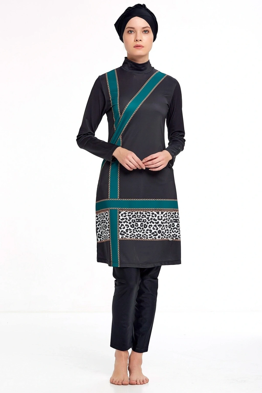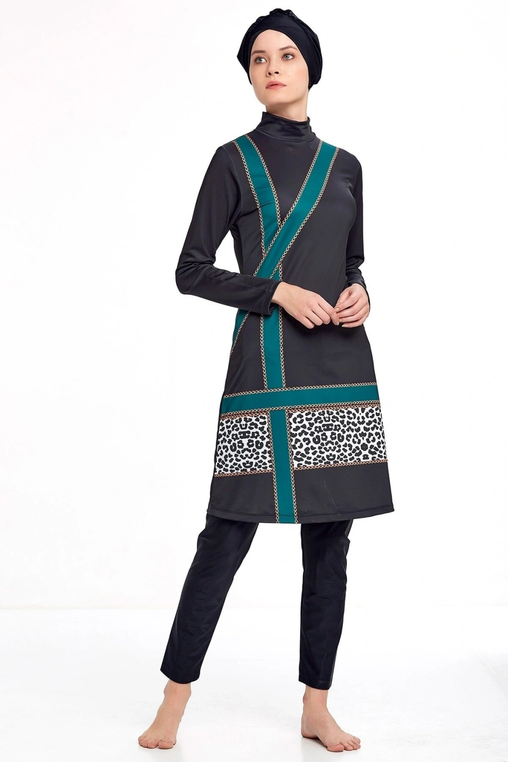 Dokuma kumaş yapısı sayesinde dayanıklılığı ve konforu bir arada sunar, uzun süreli kullanımlarda bile formunu korur; %90 pamuk içeriği ile cildinize nefes aldırır ve doğal bir yumuşaklık sağlar, suyun içinde ve dışında rahat hareket etmenizi kolaylaştırır; Esnek yapısı sayesinde vücut hatlarınıza mükemmel uyum sağlar ve hareket özgürlüğünüzü kısıtlamaz; Tesettür giyim koleksiyonuna özel tasarlanmış olup, şık ve modern çizgileriyle dikkat çekerken aynı zamanda tesettür giyim standartlarına uygunluk gösterir; Her yaş grubuna hitap eden geniş beden skalasıyla herkes için ideal bir seçimdir; gençlerden yetişkinlere kadar geniş bir kullanıcı yelpazesine sahiptir;