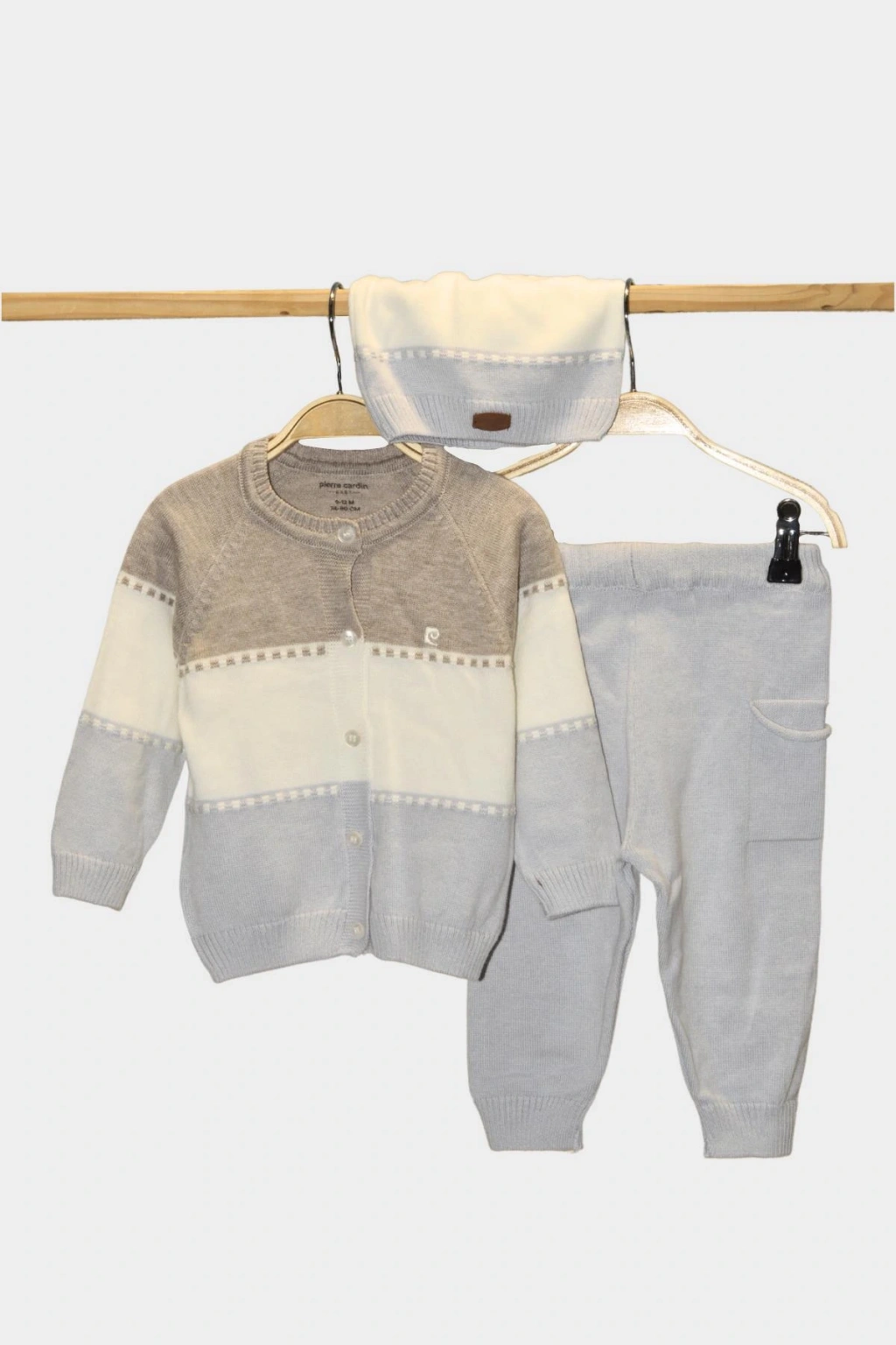 Pierre Cardin Triko 3'lü Takım 303954 Pierre Cardin'in %100 pamuk triko kumaştan üretilen hastane çıkış seti, sağlık çalışanlarına ve yeni doğan bebeklerine özel olarak tasarlanmıştır. ; Bu set, triko üst, alt ve şapka olmak üzere üç parçadan oluşmaktadır. ; Triko kumaşın yumuşak dokusu ve %100 pamuk içeriği, takım rahat ve konforlu olmasını sağlar. ; Ayrıca triko kumaşın doğal yapısı, cildin nefes almasına izin verir ve hassas ciltler için ideal bir seçimdir. ; Takım, yeni doğan bebeklerin sağlığına özen gösterirken, aynı zamanda anne ve babalarının zevkine de hitap eder. ; Geniş renk skalası sayesinde, her zevke ve tarza uygun bir seçenek sunar. ; Triko alt, üst ve şapka gibi üç parçadan oluşan bu set, hastanede ve evde kullanım için uygun tasarlanmıştır. ; Ayrıca Pierre Cardin kalitesiyle üretilen bu set, uzun süreli kullanıma dayanıklıdır.;