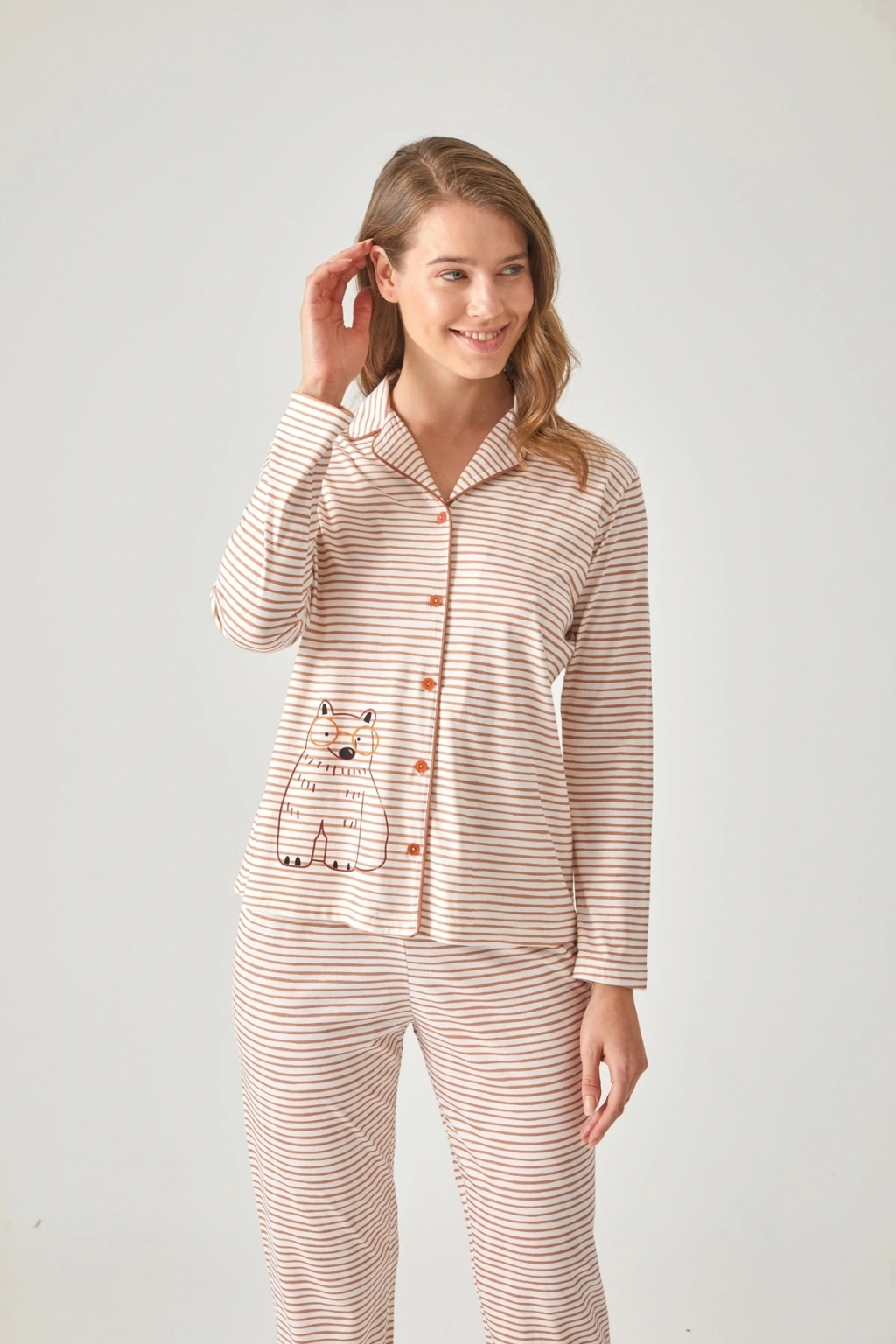 Modal-pamuk materyali sayesinde nefes alabilir yapısıyla terletmez ve rahat bir uyku deneyimi sunar.; Uzun kollu tasarımı ile mevsim geçişlerinde ideal sıcaklıkta tutar ve hareket özgürlüğünüzü kısıtlamaz.; Canlı turuncu çizgili deseniyle şık ve dinamik bir görünüm kazandırırken, aynı zamanda göz alıcı detaylarıyla dikkat çeker.; İki parçadan oluşan set içeriği; üst ve alt olmak üzere tamamladığınız konforlu bir uyku kıyafeti sunar.; Regular kalıp ile rahat hareket etme özgürlüğünüzü kısıtlanmadan kullanmanızı sağlar, tüm vücut tiplerine uyum sağlayacak şekilde tasarlanmıştır.; Tüm yaş gruplarına uygun olarak geniş bir kullanıcı kitlesine hitap eder; herkesin evde geçirdiği zamanlarda keyif alabileceği bir seçimdir.; Örme kumaş yapısı sayesinde esneklik kazanan bu pijama takımını uzun süreli kullanım için idealdir; formunu koruyarak konforlu kalır.; Homewear koleksiyonunun bir parçası olarak ev giyiminde şıklığınızı korumanızı sağlayacak zarif detaylara sahiptir.;