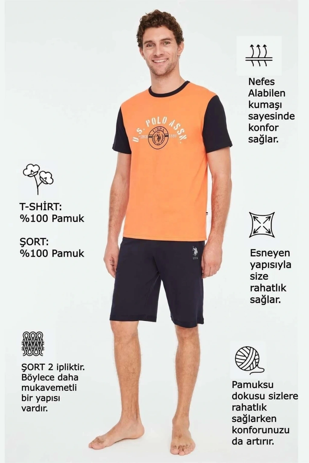 Rahat kesimiyle günün her saatinde konfor sunar.; Yarı açık kol tasarımı sayesinde serin ve ferah bir uyku deneyimi sağlar.; Kaliteli kumaşı ile uzun süreli kullanımda bile formunu korur.; U.s polo markasının kalite ve konfor anlayışını yansıtan zarif tasarım detaylarına sahiptir.; Kolay bakım imkanı sunarak pratik bir kullanım vaat eder.;