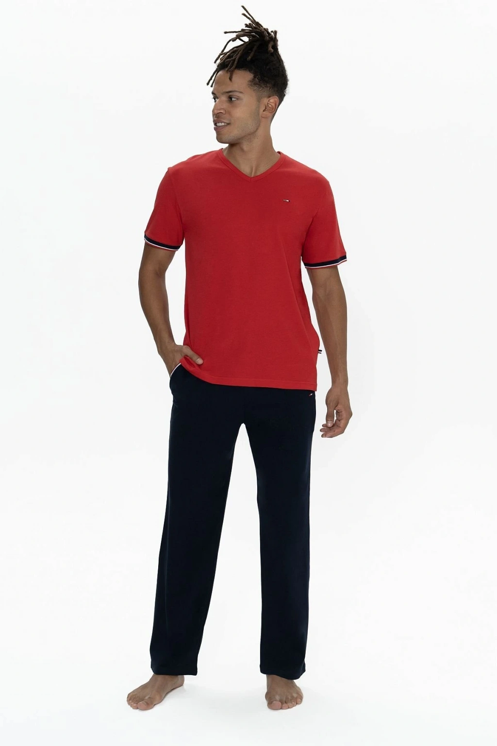 U.s Polo Assn. 18896B Erkek Büyük Beden Kısa Kollu Bisiklet Yaka Pijama Takımı-Kırmızı