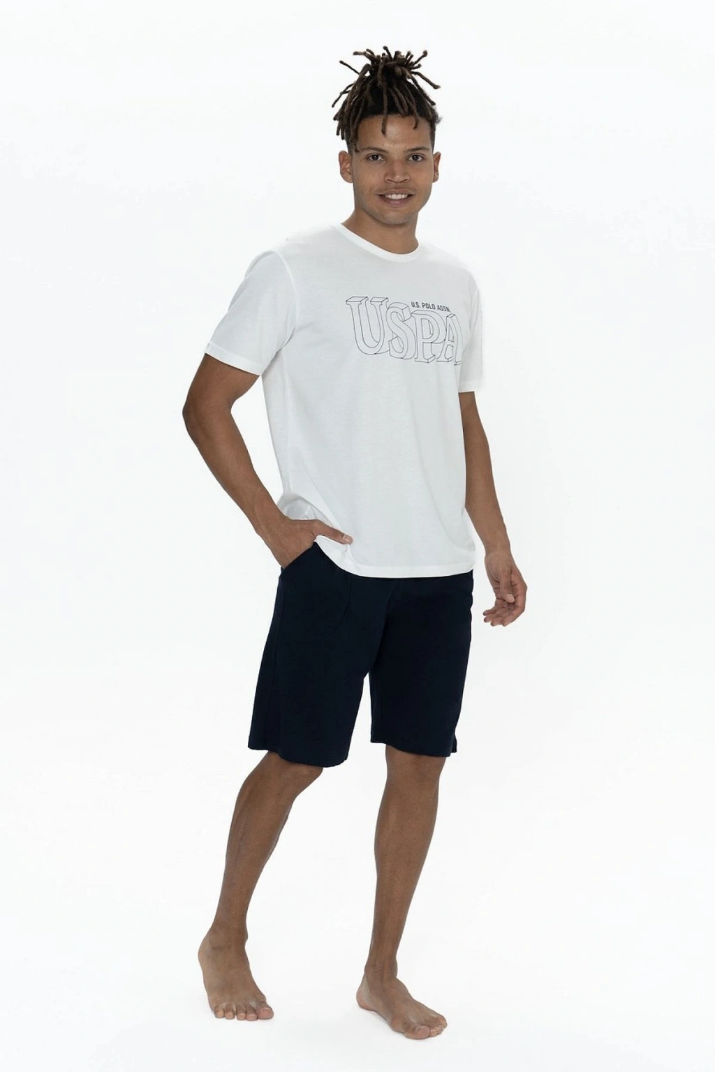 U.s Polo Assn. 18871 Erkek Kısa Kollu Bisiklet Yaka Şortlu Pijama Takımı-Ekru