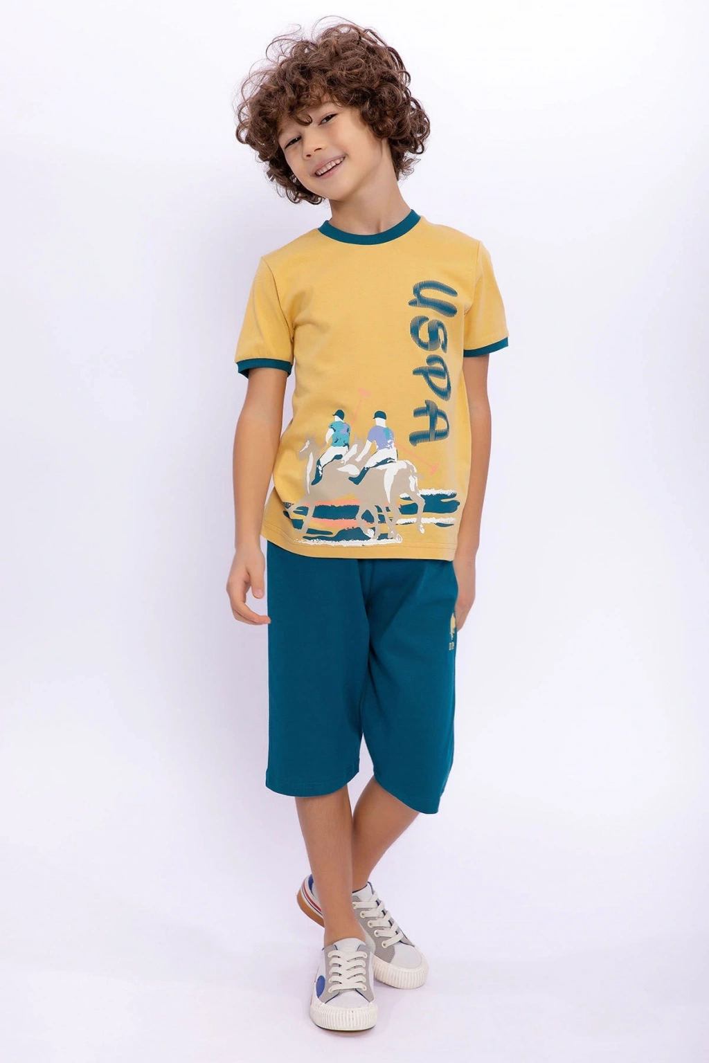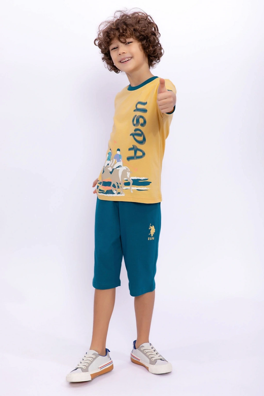 Yaz ve ilkbahar dönemleri çocukların çok daha fazla enerji dolu olduğu zamanlar oluyor. ; Çocuğunun bu enerji patlaması yaşadığı dönemlerde her daim onun yanında olmalısın! Fiziksel olarak hep yanında olamasan da u.S. ; Polo assn zencefil erkek çocuk bisiklet yaka kapri takımımız ile onun hep rahatlığını gözetebilirsin. ; Zencefil renkli üst tarafı özel tasarımlarla da birleştiği zaman ortaya çok şık bir görünüm çıkıyor. ; Çocuğunun evde ya da dışarda ferah bir şekilde oyunlar oynamasını istiyorsan kapri takımımız sana destek verebilir. ; Erkek çocuklar için üretilen zencefil kapri takımımız en sıcak günlerde bile aranılan o ferahlık hissini yaşatmaktadır. ; Gün boyu oyunlar oynamak isteyen çocukların her daim yanında olur ve onları dış etkenlerden korur. ; Ayrıca, çocukların terleyip hasta olmalarını da istemeyiz. ; Pamuklu ve hava alabilen kumaşı ile en sıcak günlerde dahi çocukların terlemesi engellenir. ; Rahat kesimi sayesinde çocuklara kolay hareket imkanı sunar. ; Çocuğunla beraber güzel vakitler geçirirken onun sürekli terini kontrol etmek istemiyorsan, erkek çocuk kapri takımımızı denemelisin! Ürün kodu:Us1024-C-V2 Kumaş detay:Üst : %100 pamuk (süprem)alt : %100 pamuk (süprem) Sezon :Ilkbahar-Yaz Marka:U.S. ; Polo assn Renk:Zencefıl Cinsiyet:Erkek çocuk;