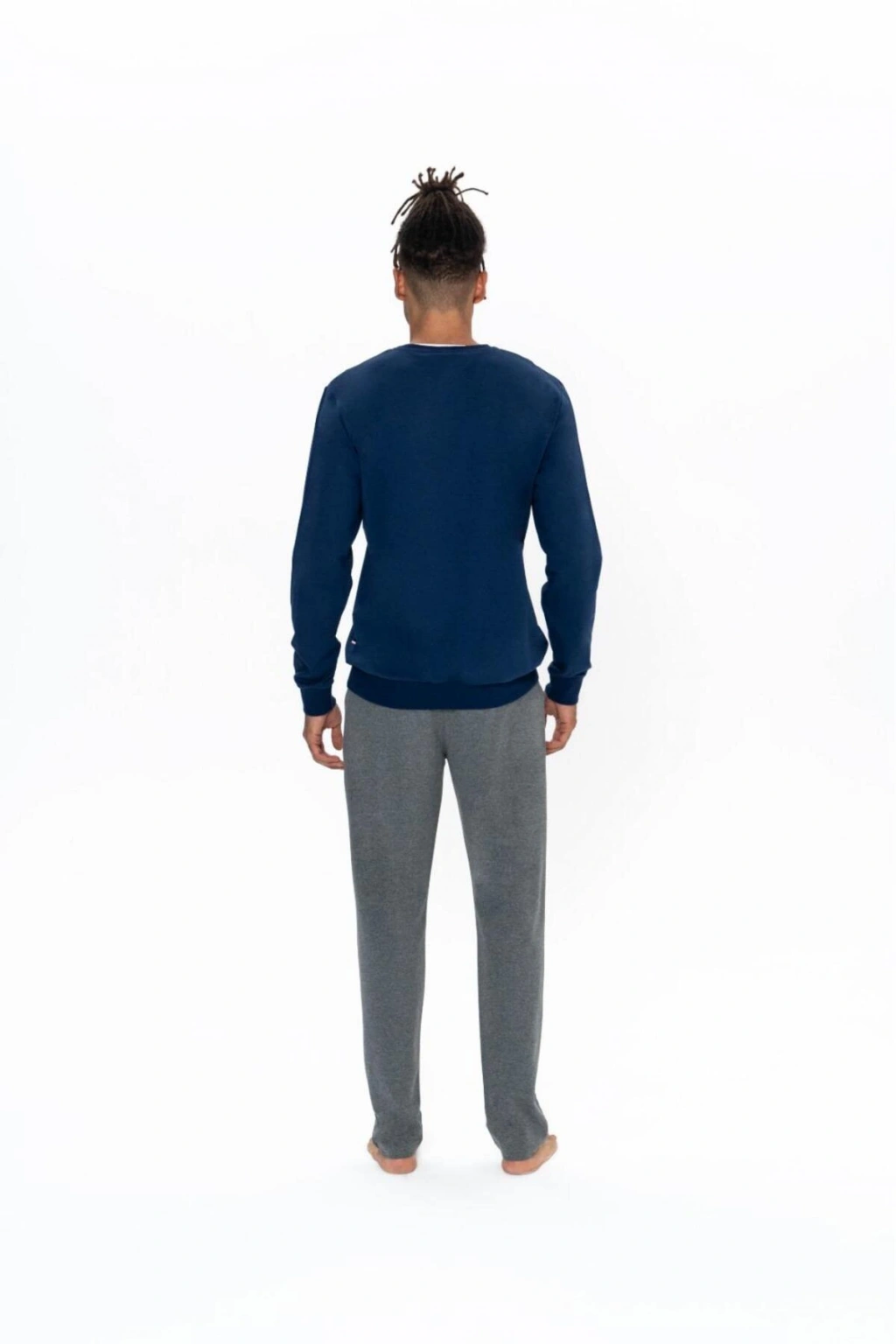 6093 Erkek Uzun Kollu Bisiklet Yaka Pijama Takımı-Lacivert