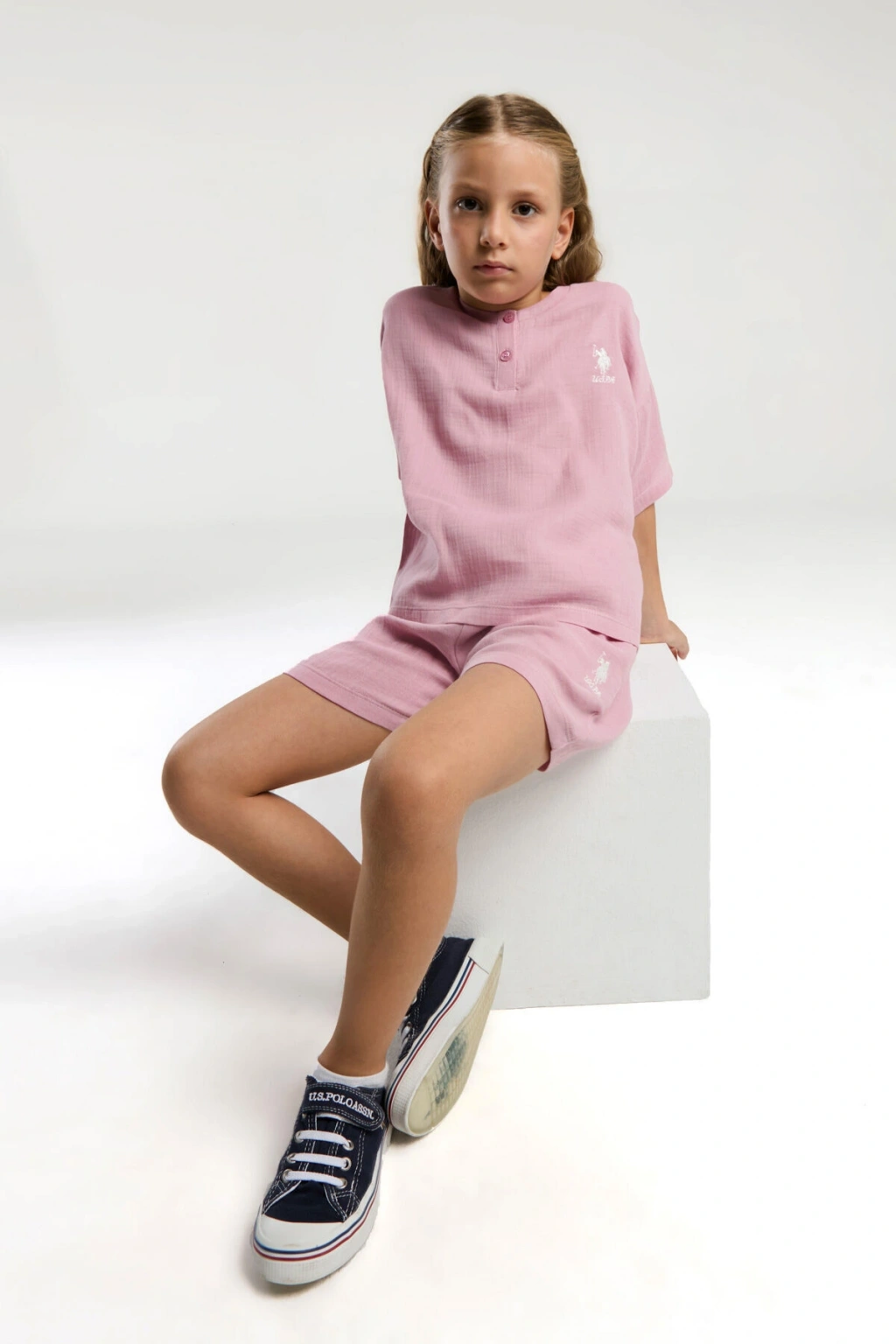 U.; S.; Polo Assn.; Kız Çocuk Pembe Şort Takım