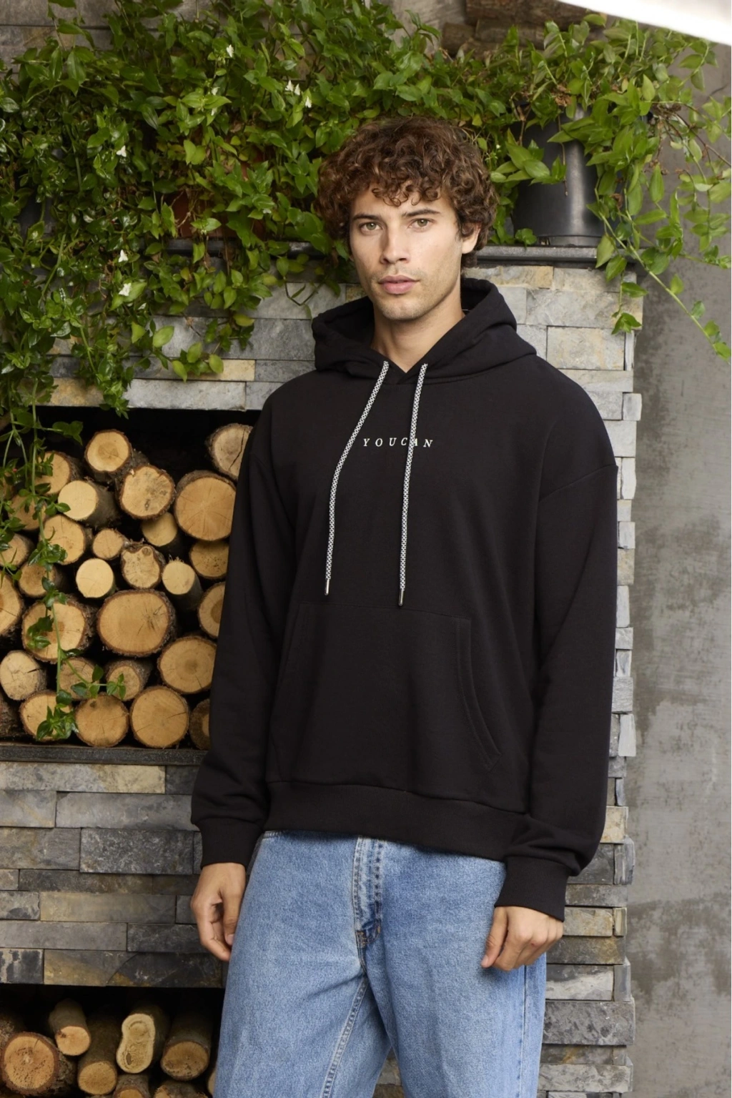 Kanguru Cepli Kapüşonlu Sweatshirt - Siyah