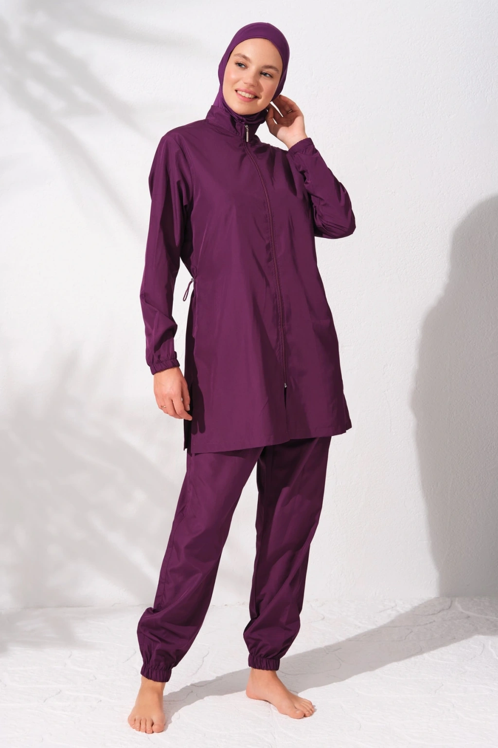 Pierre Cardin markamıza ait Tesettür grubumuz yılın trendlerini yansıtıyor! Tesettür mayo pantolon, fermuarlı uzun kollu üst , bone ve boyunluk olmak üzere 4 parçadan oluşmaktadır. ; Tam kalıp üretilmiş olan mayoyu kendi bedeninizde alabilirsiniz.Ara bir bedene sahipseniz bir beden büyük tercih etmelisiniz. ; Tesettür mayonun tunik üstü popo hattını örter.Paraşüt kumaş bilekleri lastikli fermuarlı üstün belinde lastik detayı bulunmaktadır.Bu lastikler sayesinde bedeninize göre ayarlayabilirsiniz. ; Beli lastikli paraşüt kumaş pantolona sahip tesettür mayonun paçaları lastiklidir. ; Fermuarlı ceplere sahip tesettür mayo pantolonun iç kısmında lastikli file astar mevcuttur. ; Tüm tesettür mayo modellerinde üst parçanın her iki yanında yer alan biyeleri pantolon veya taytlarda bulunan biritlere sabitleyerek yüzerken yukarı toplanma durumundan kurtulabilir ve daha konforlu bir kullanım sağlayabilirsiniz. ; Manken üzerindeki M-38 bedendir. ; Manken ölçüleri: Boy:174 Kilo:52 Göğüs: 80 Bel:60 Basen:90 Ürünü daha uzun süre kullanabilmek için soğuk su ve beyaz sabunla yıkamalı ve gölgede kurutmalısınız. ; Makinede yıkanmamalıdır,ütülenmemelidir. ; Kumaş:%100 Polyester;