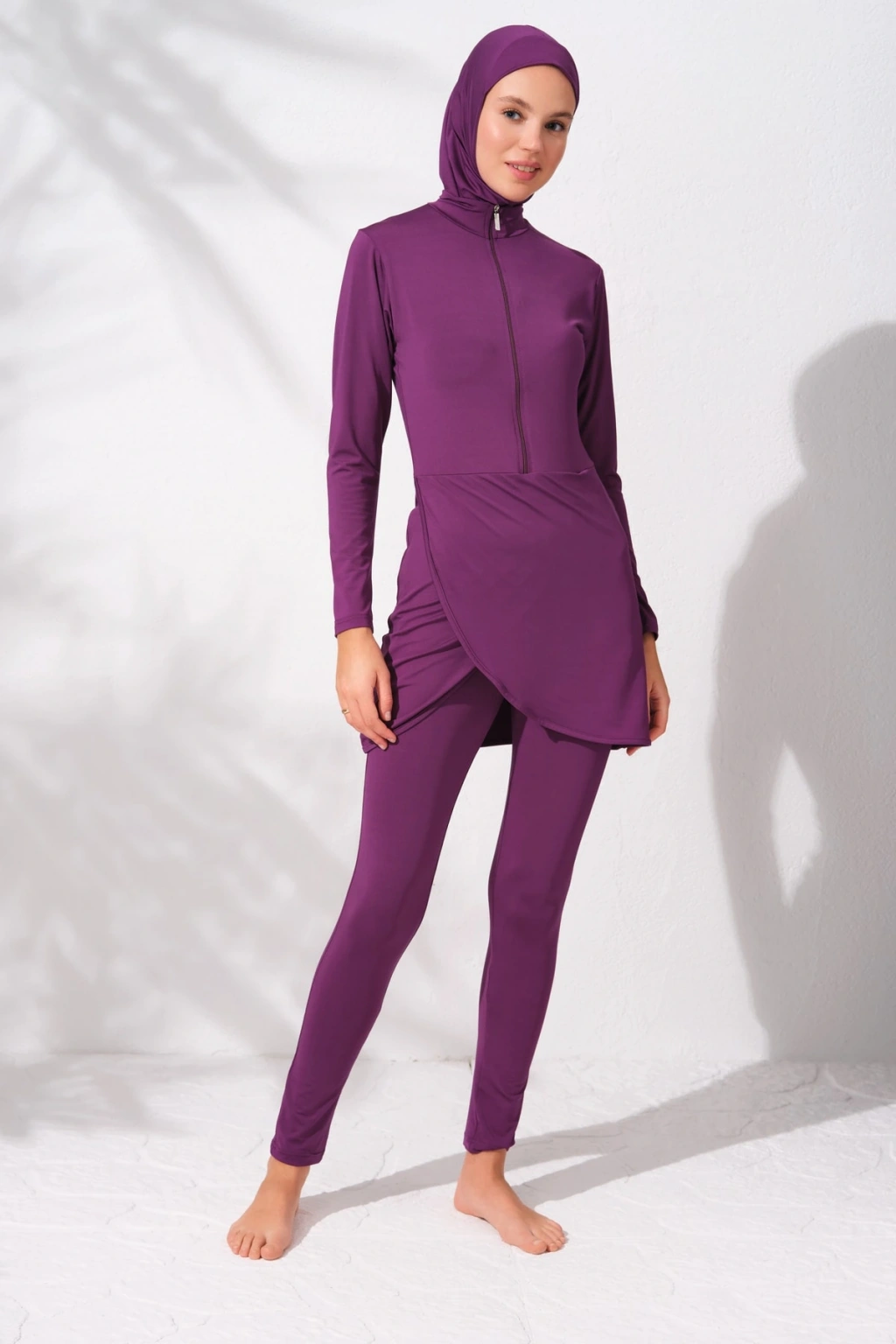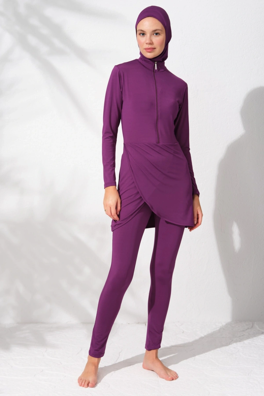 Uzunkollu Fermuarlı Tesettür Mayo Mor 231914