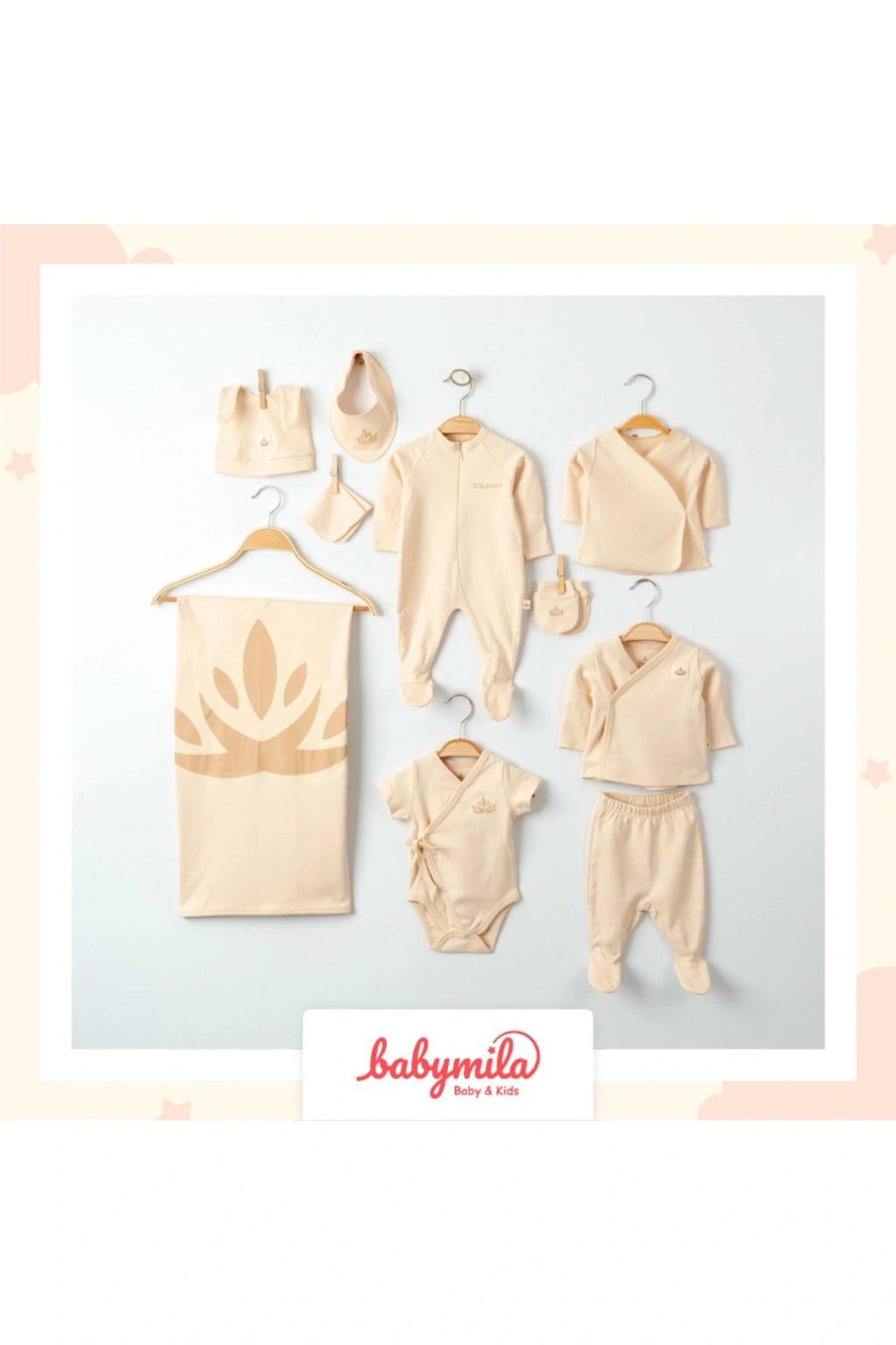 Yenidoğan Bebek Için Organik Pamuklu 10 Parça Hastane Çıkışı Seti - Zıbın Ve Tulum Takımı Bej