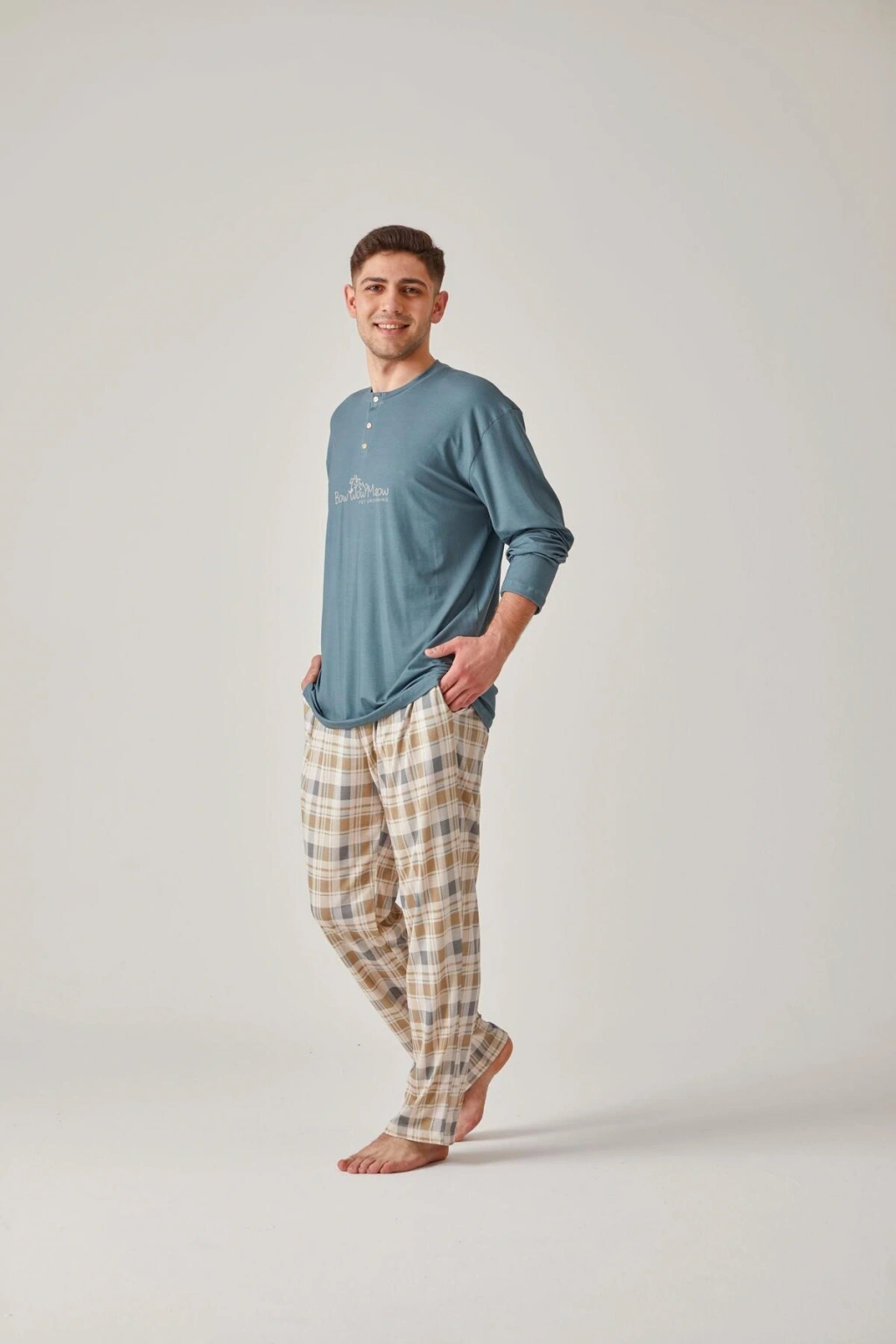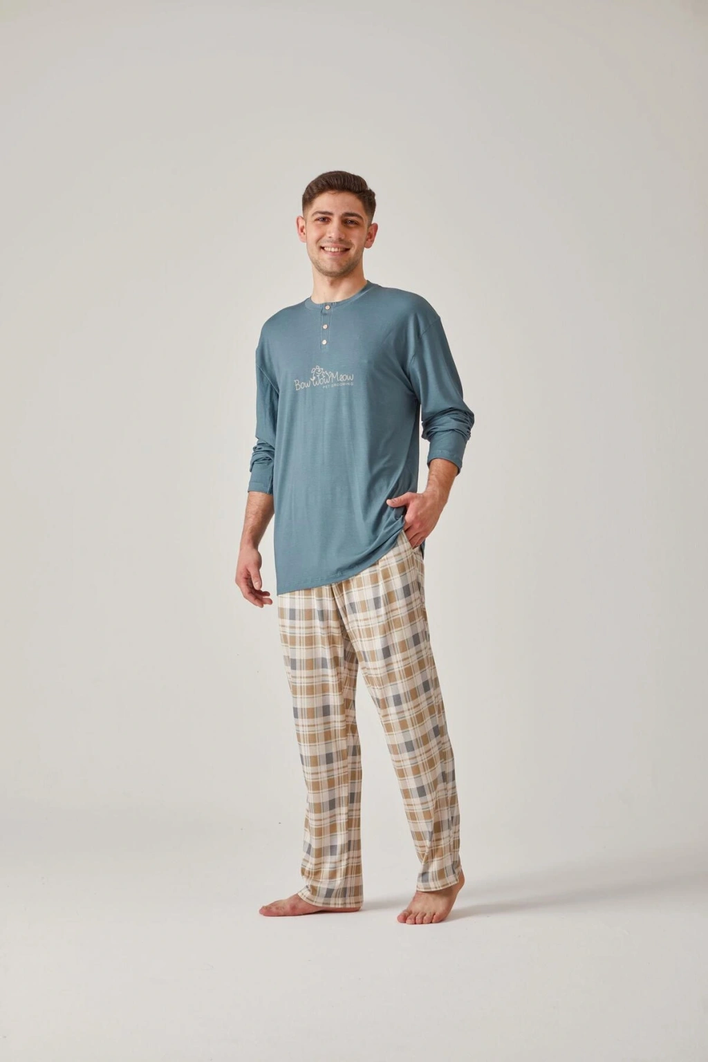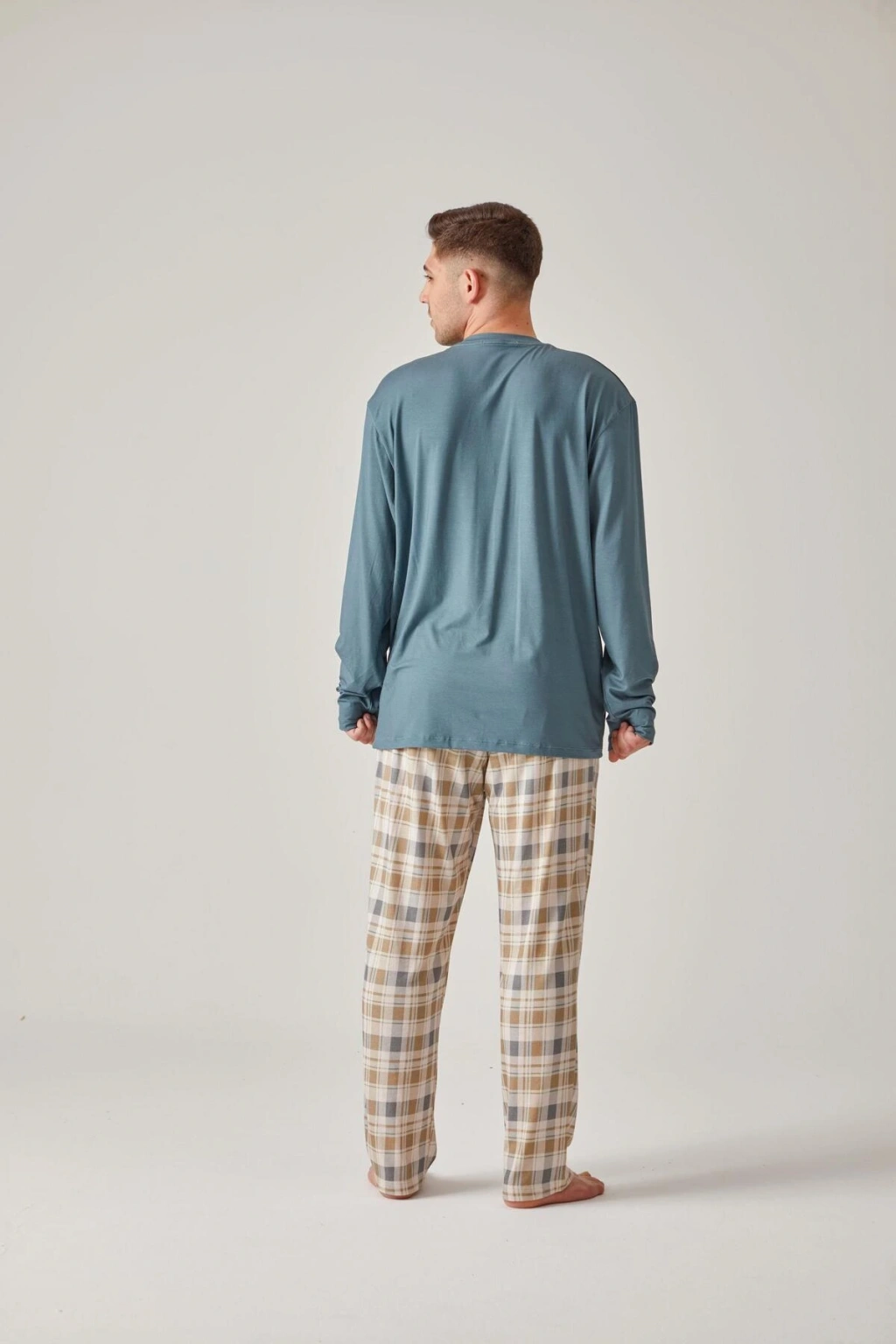 Desenli tasarımı ile şıklığı ve rahatlığı bir arada sunan yeşil baskılı tişört ve ekose modal pamuk erkek pijama takımı, ev giyiminizin vazgeçilmezi olacak; Homewear koleksiyonunun bir parçası olarak tasarlanan bu pijama takımı, evde geçirilen zamanları daha keyifli hale getirir; İki parçadan oluşan set, hem tişört hem de pijama altından oluşur ve ihtiyacınız olan her şeyi tek pakette sunar; Modal pamuk materyali sayesinde yumuşak dokusuyla cildinize nazikçe dokunurken, nefes alabilir yapısıyla konforlu bir uyku deneyimi sağlar; Uzun kollu tasarımı ile mevsim geçişlerinde ve serin akşamlarda ideal sıcaklık sunar; Örme kumaş tipi, esnek yapısıyla hareket özgürlüğünüzü kısıtlamaz ve rahat bir kullanım sağlar; Regular kalıp ile vücudu saran ancak sıkmayan bir yapıya sahiptir; her bedene uyum sağlayacak şekilde tasarlanmıştır; %50 pamuk ve %50 modal karışımından oluşan materyal bileşeni,;