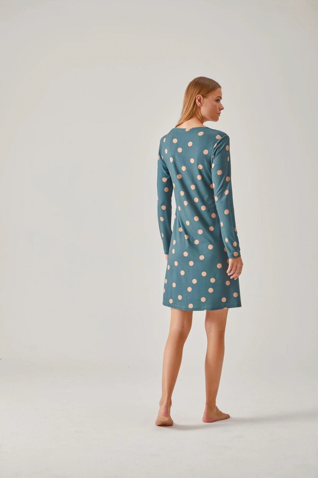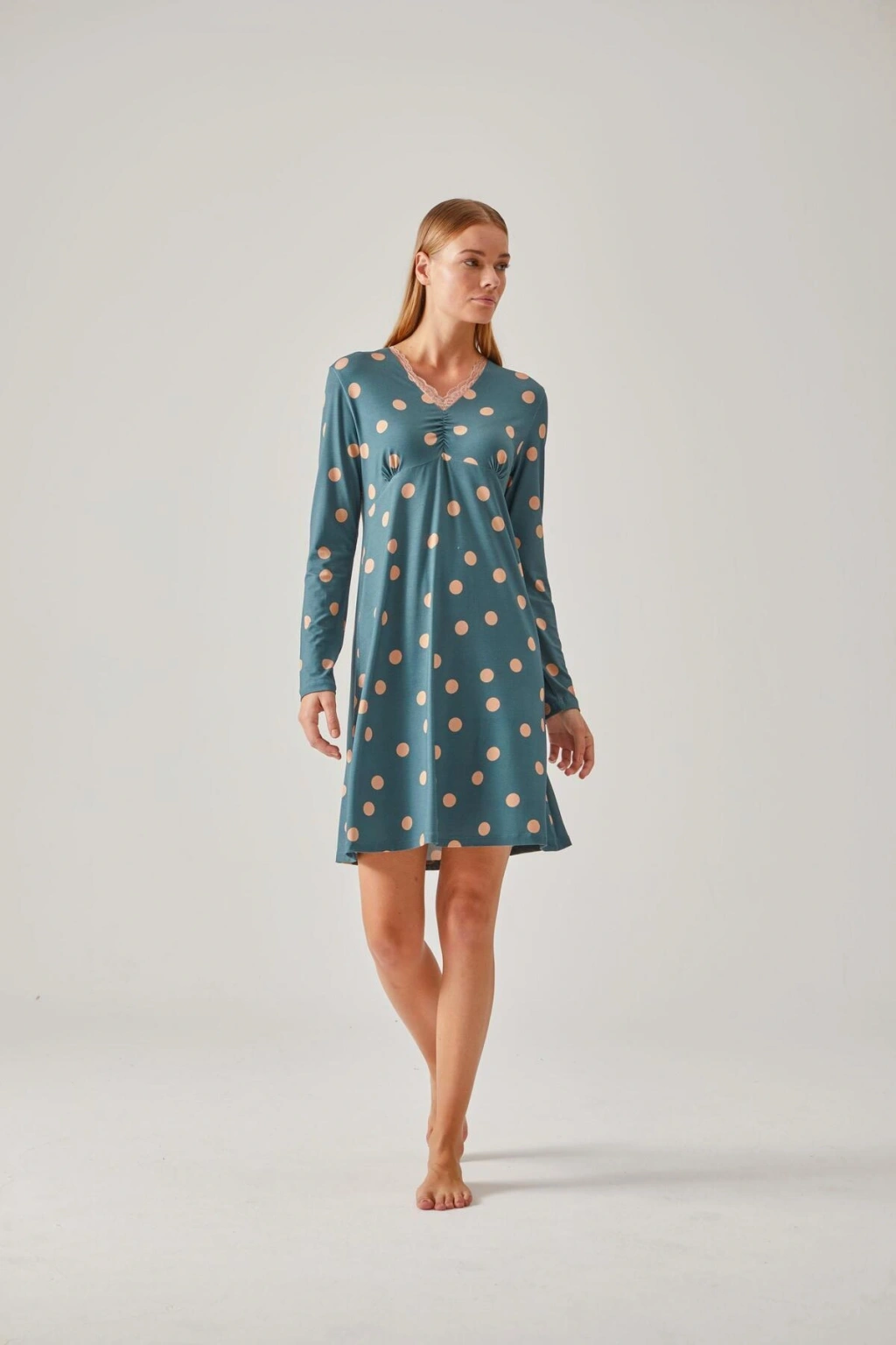 İç giyim koleksiyonunuzda şıklığı ve konforu bir arada sunan yeşil puantiye desenli dantelli viskon gecelik, her yaş grubuna hitap eden zarif bir tasarıma sahiptir; %95 viskoz ve %5 elastan içeriği ile yumuşak dokusu ve esnek yapısı sayesinde gün boyu rahat bir kullanım sağlar; Düz kesimiyle sade ve şık bir görünüm sunan bu gecelik, günlük kullanım için idealdir; Desenli tasarımı ile göz alıcı bir stil oluştururken, dantel detayları feminen dokunuşlar katmaktadır; Viskon dokuma tipi, nefes alabilirliği artırarak cildinizin gün boyu rahat etmesini sağlar; Örme kumaş yapısı sayesinde esneklik ve dayanıklılık sunarak uzun süreli kullanım imkanı tanır;